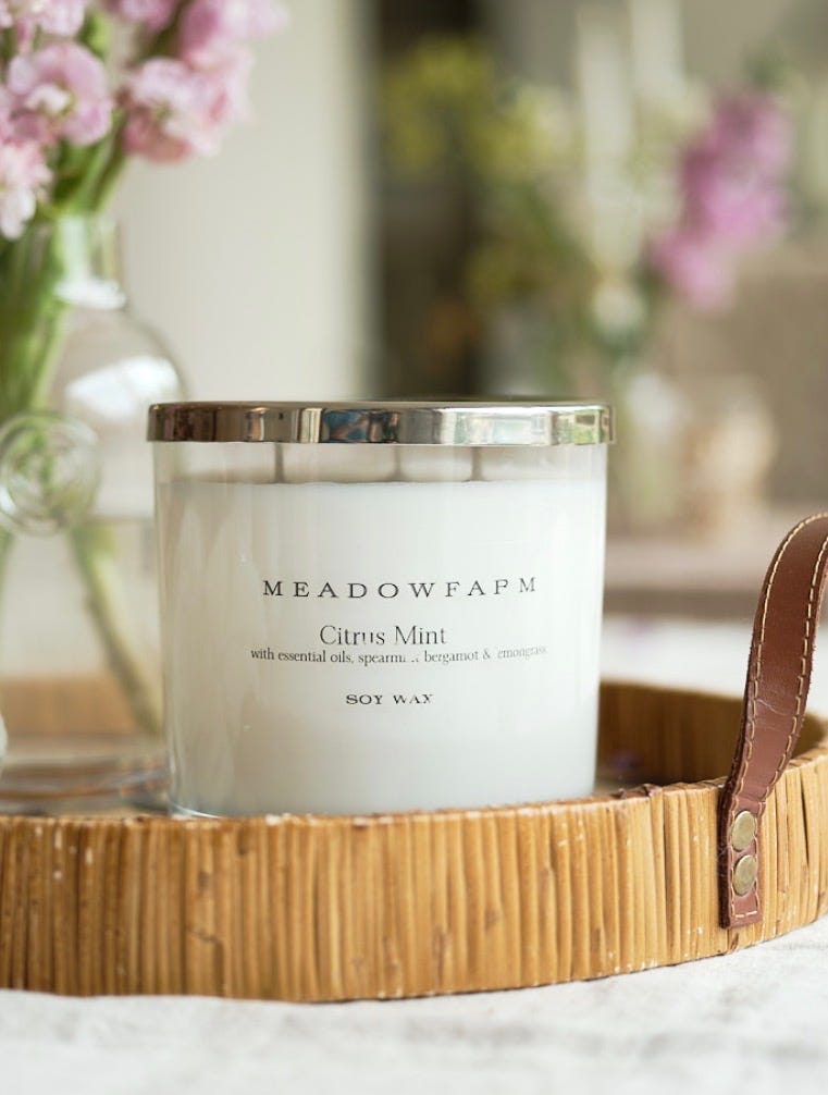 At the moment, the Citrus Mint candle from my favourite local brand, Meadow Farm, is taking pride of place. With its blend of lemongrass, spearmint and bergamot, it’s fresh and uplifting as I sit and tap away at my laptop.